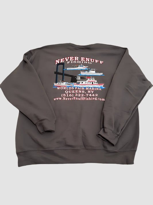 CUSTOM NEVER ENUFF CREW NECK SWEATSHIRT IN CHARCOAL GRAY